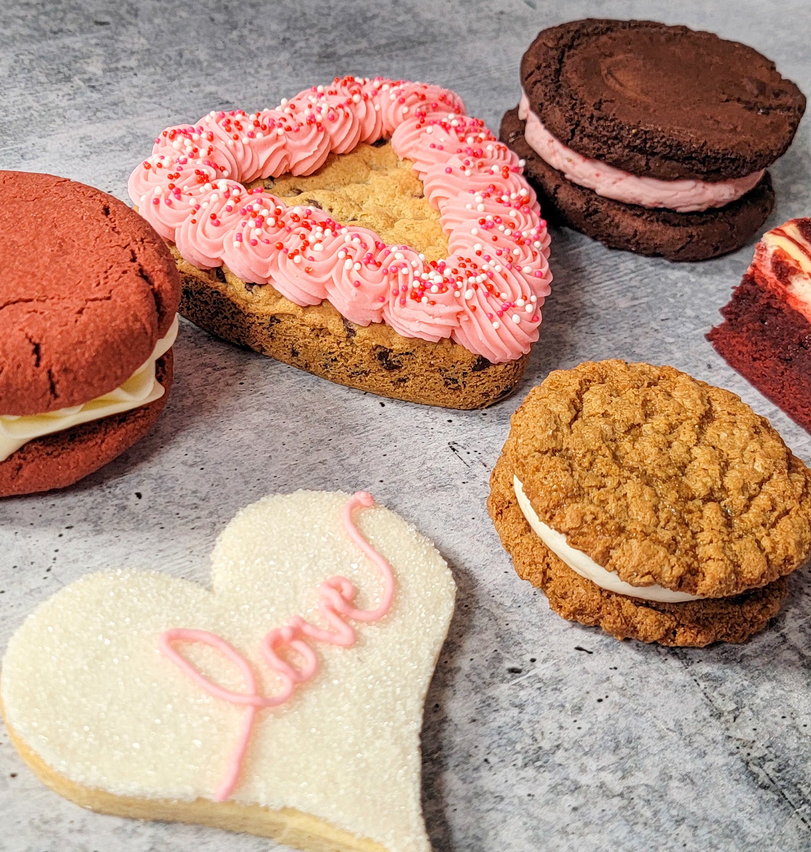Our Valentine’s Day Treat Box is made for sharing…or not—we won’t judge! Inside, you’ll find six handcrafted favorites: a red velvet cookie sandwich, a mini chocolate chip cookie cake, a strawberry brookie sandwich, a classic vanilla sugar cookie, an oatmeal creme pie, and a red velvet cheesecake brownie (February's limited-edition treat). All of it comes together in one sweet box, making it an easy way to show a little love to someone else (or yourself). And yes, everything in the box is gluten free, without ever tasting like it!